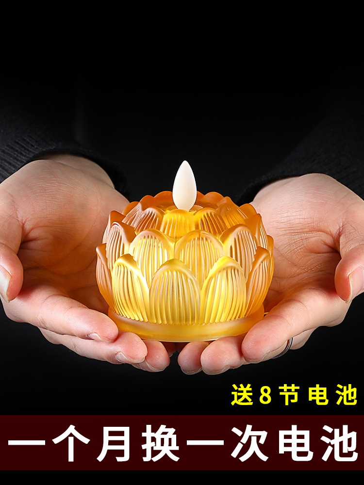 琉璃电子家用灯D仿真蜡烛供佛供佛莲花观音菩萨长明灯小荷花灯