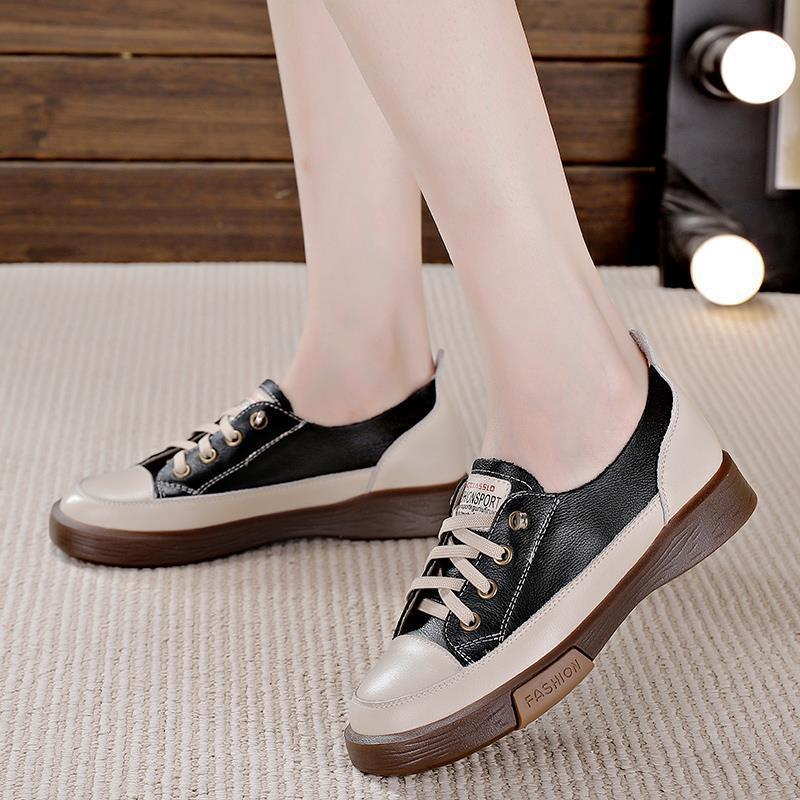 真软底皮小白鞋女2023新款女鞋春秋款板鞋孕妇鞋厚底单鞋子帆布鞋