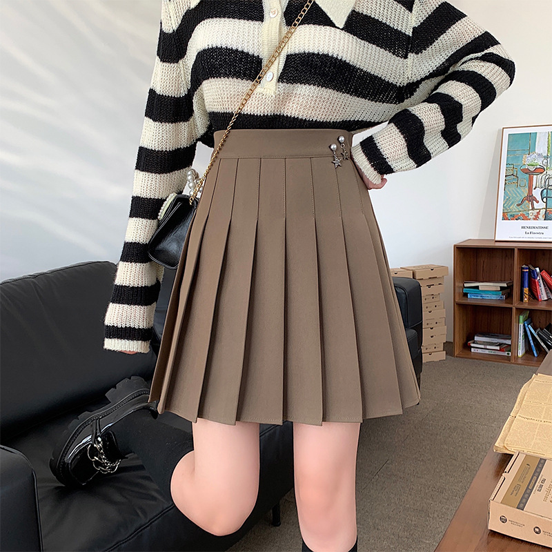 卡其色百褶裙女2023新款秋冬大码高腰半身裙加长胖mm显瘦a字短裙