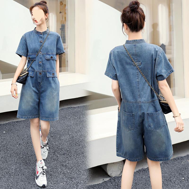 复古牛仔连体裤短裤潮2023年夏新款欧货女洋气减龄休闲薄款连衣裤