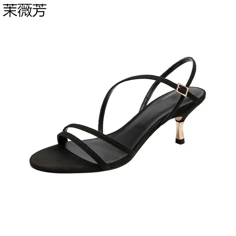 欧洲站2023年夏季新款女鞋小众一字带露趾性感高跟凉鞋女细跟