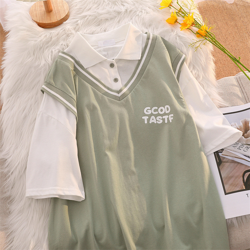 夏季盐系polo衫短袖t恤女装2023年新款温柔风半袖夏天假两件上衣