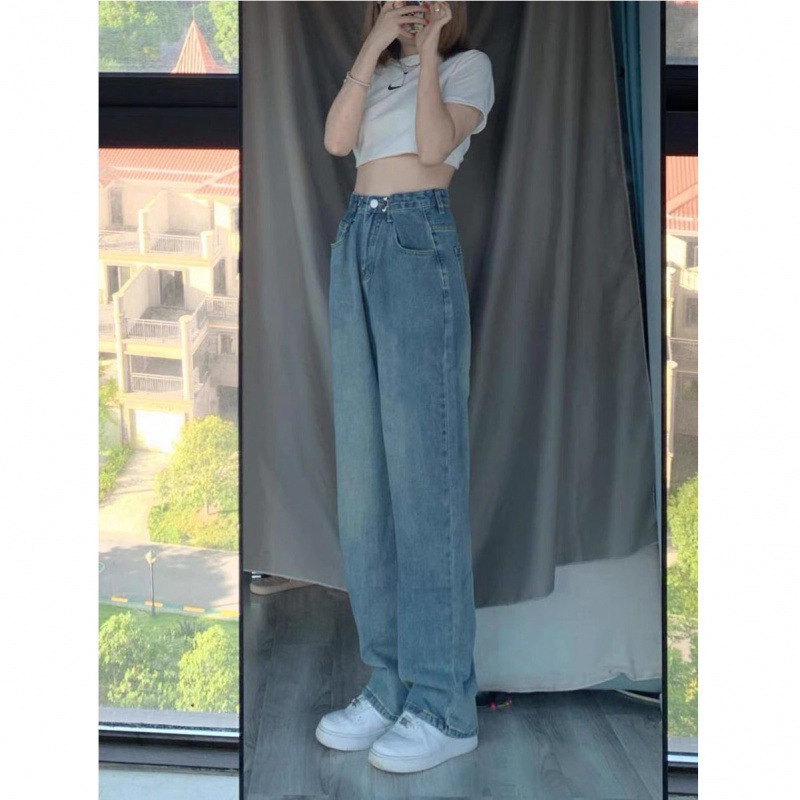 牛仔裤 高端薄款女夏新款韩版复古小个子宽松阔腿直筒高腰裤