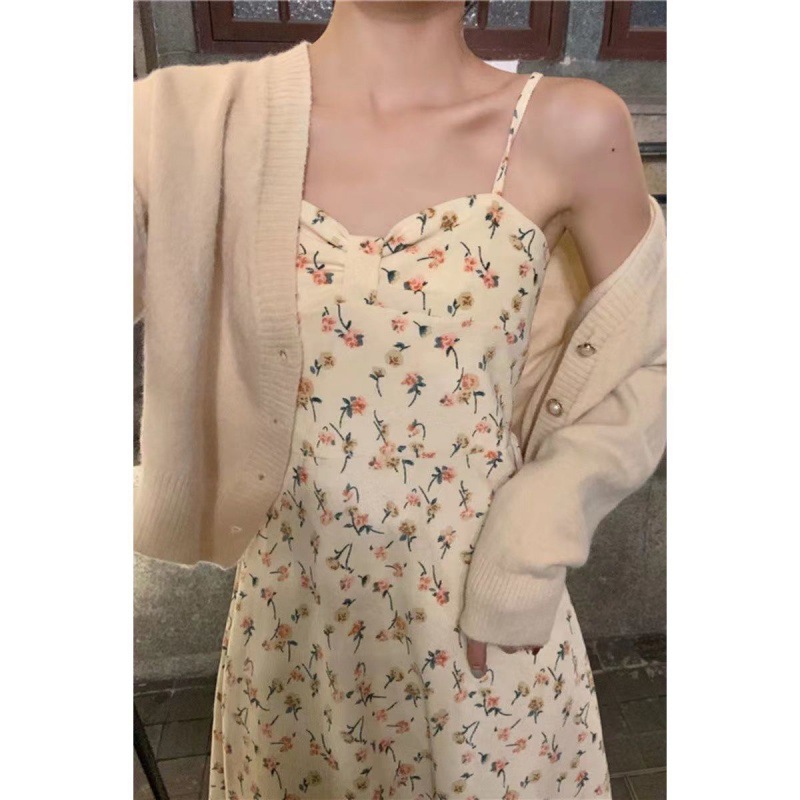 碎花裙连衣裙碎花法式温柔风桔梗盐系女春夏年新款仙收腰吊带裙子
