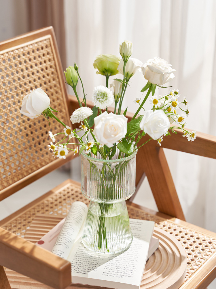 轻奢小众简约烛台创意玻璃花瓶透明水培鲜花客厅餐桌插花装饰摆件