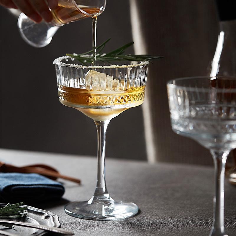 欧式刻花宽口香槟杯马天尼高脚杯家用创意玻璃甜品鸡尾酒杯子
