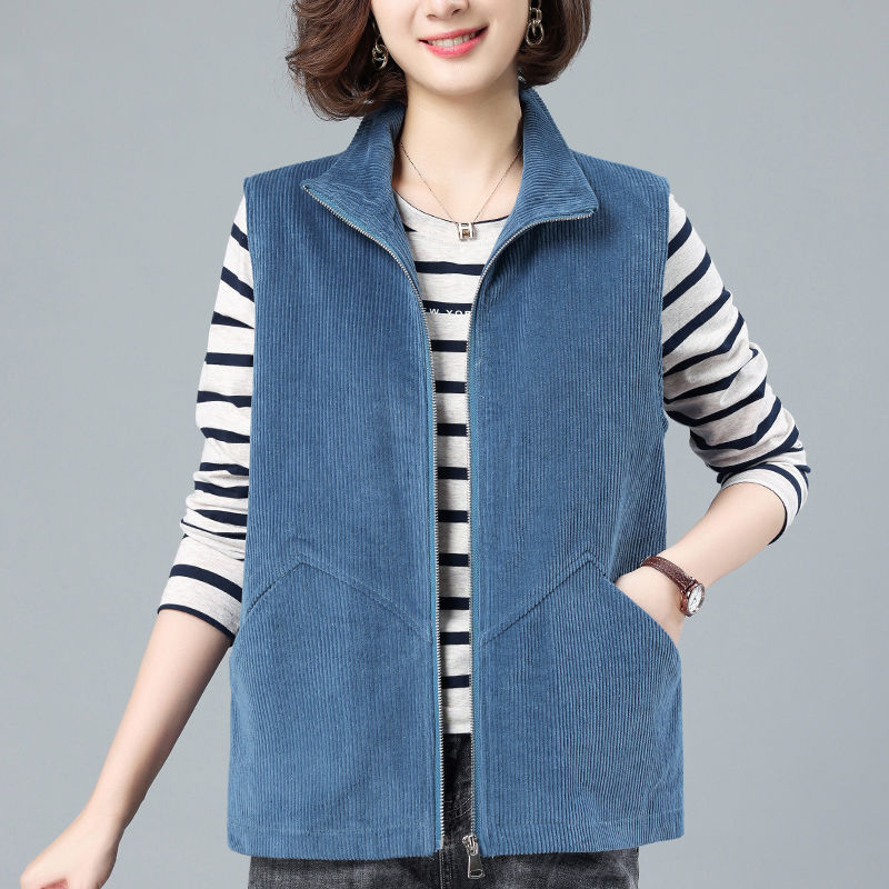 休闲灯芯绒短款马甲女2022春秋新款大码中年妈妈宽松马夹外穿背心
