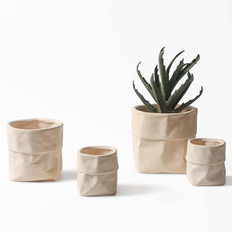 素烧纸袋陶盆手绘透多肉植物透气简约花盆陶瓷价大口径