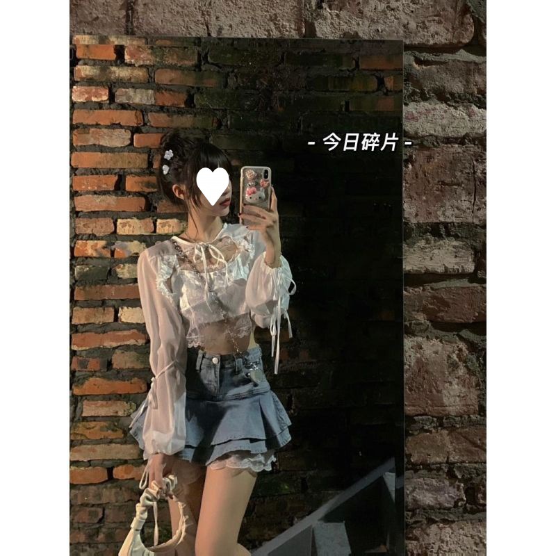 2023夏季韩系甜美洋气超仙长袖雪纺罩衫+蕾丝吊带背心女上衣套装