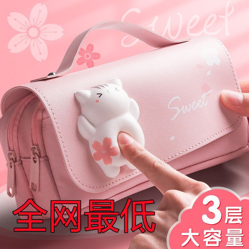 网红笔袋解压小学生女简约大容量多功能文具盒可爱少女