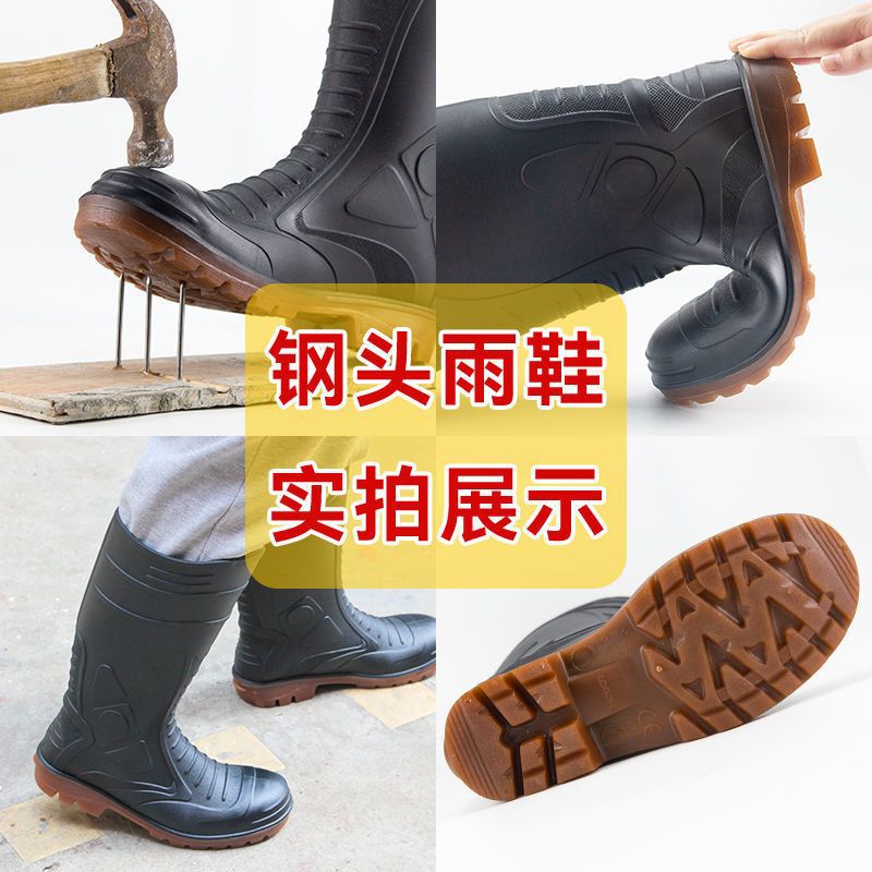 钢头钢底劳保雨鞋男款工地钢板水鞋钢包头水靴防砸防刺防滑防水鞋