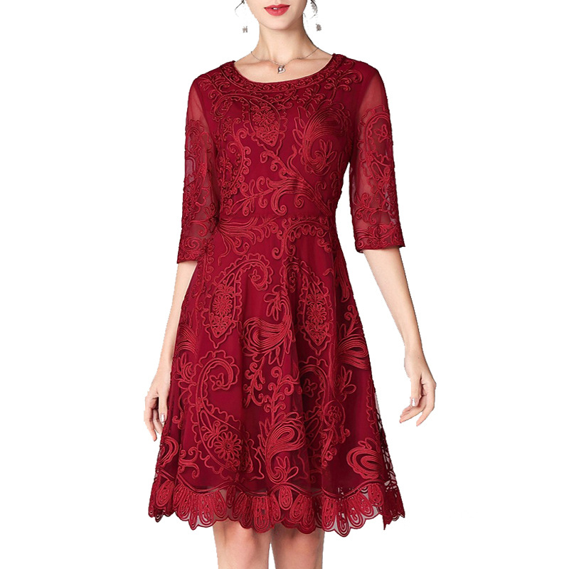 喜婆婆婚宴装丈母娘宴会礼服洋气女中年结婚妈妈装蕾丝连衣裙春夏