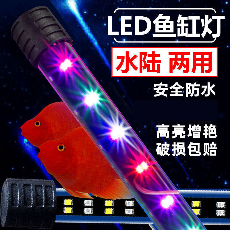 鱼缸led灯防水潜水灯超亮三基色鱼缸灯照明灯七彩曾艳水陆两用灯