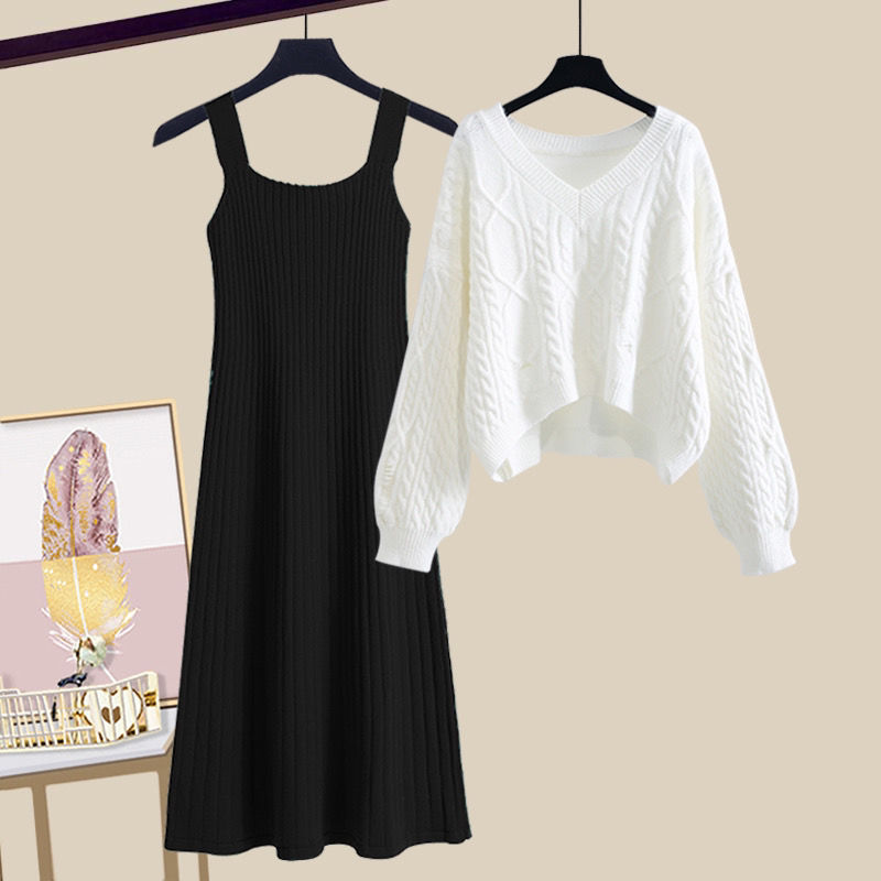 小个子秋装搭配显高吊带连衣裙套装女早春秋时尚毛衣裙子两件套潮