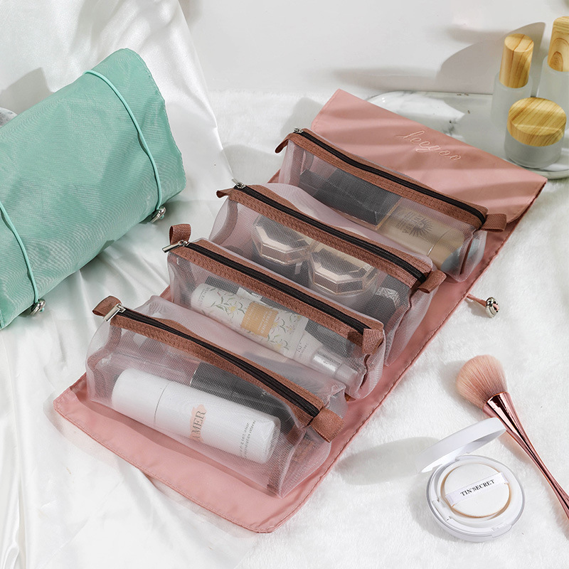 网红四合一化妆包 网纱化妆刷收纳包 可收纳旅行化妆袋折叠收纳袋