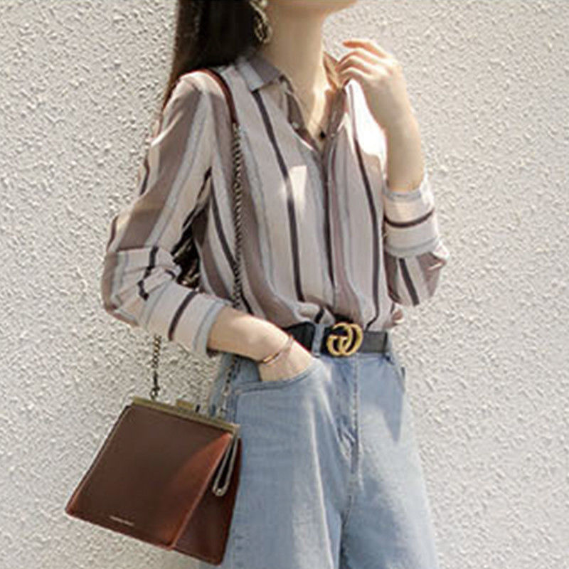 法式复古时尚条纹防晒衣雪纺衬衫女装2023年新款潮宽松上衣服洋气