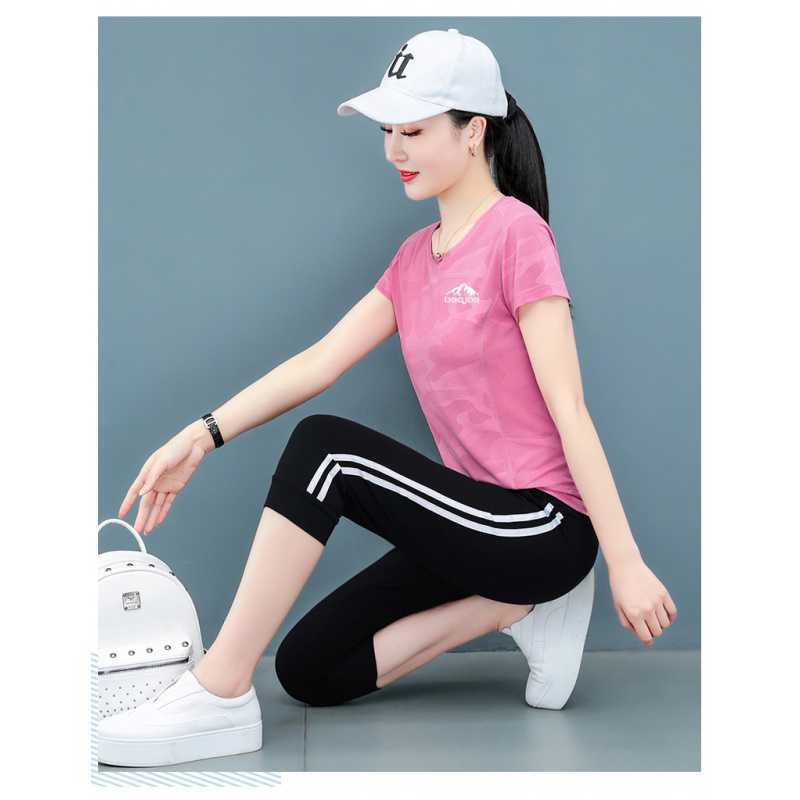 冰丝速干运动套装夏季新款衣宽松时尚显瘦七分裤短袖两件套妈妈装