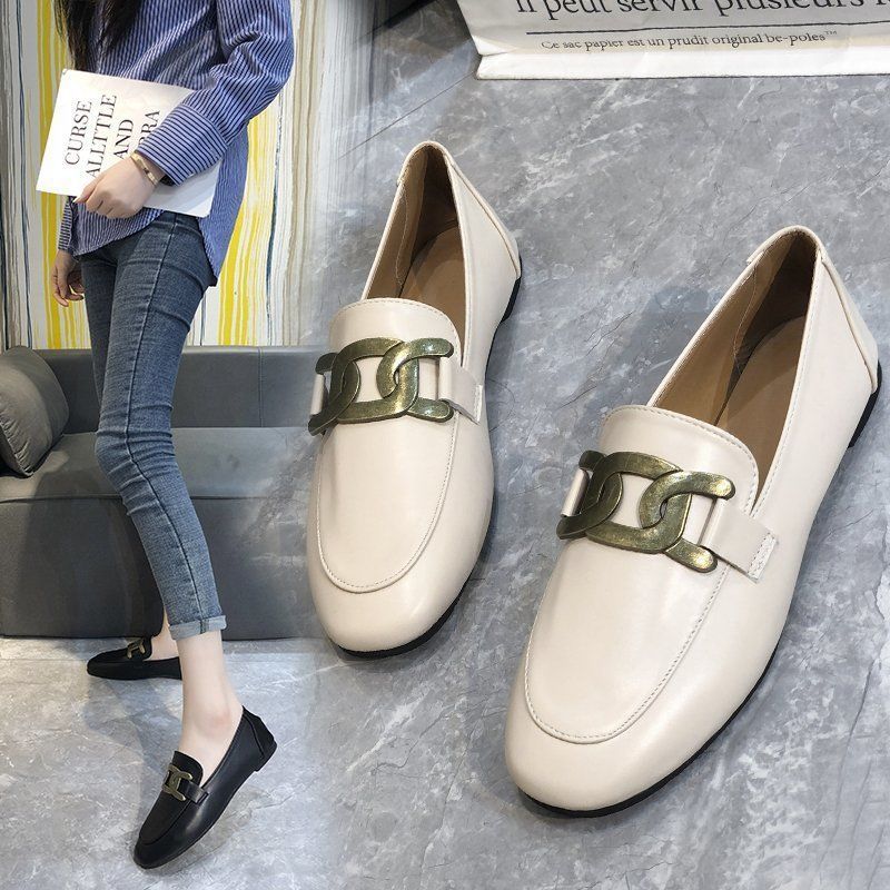 35-43码 大码女鞋41乐福鞋女一脚蹬新款英伦小皮鞋春秋平底单鞋42