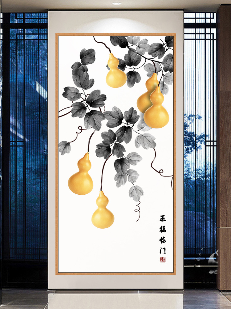 五福临门葫芦贴画入户玄关画走廊壁画背景墙装饰自粘墙面贴纸年画
