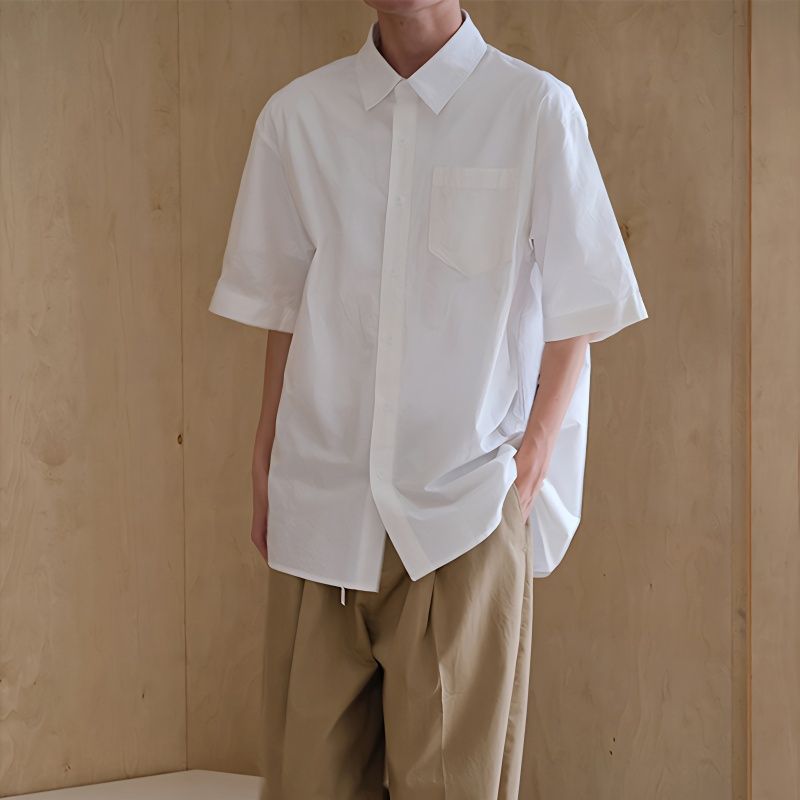 夏季男士白色短袖衬衫2023新款宽松潮流复古色休闲日系港风上衣