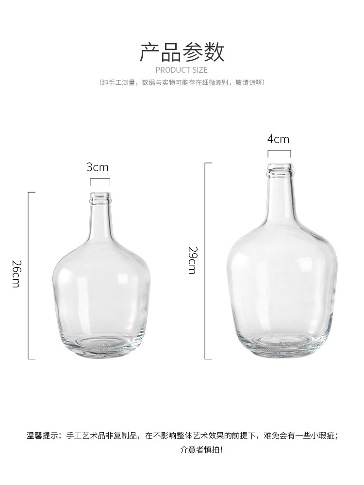 轻奢北欧简约大肚小口玻璃花瓶透明马醉木吊钟客厅餐桌插花瓶摆件