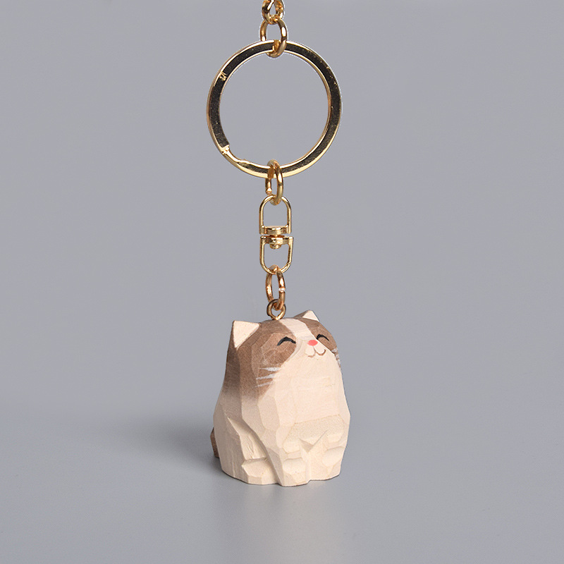 木雕链挂饰钥匙雕猫咪挂件日系系实木可爱刻小动物扣钥匙礼物