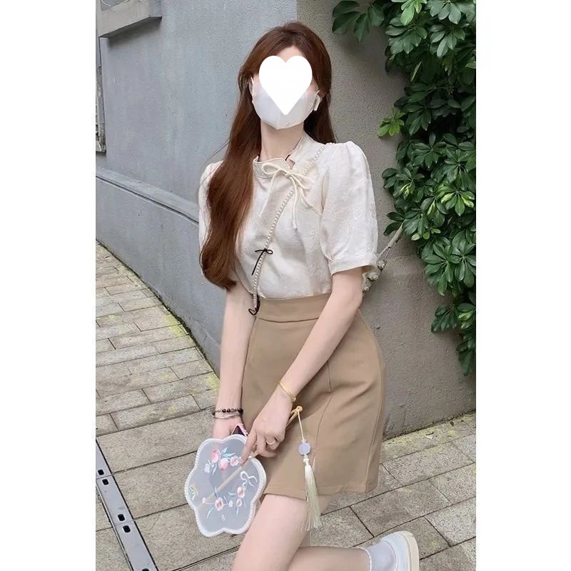 中国风女装港味套装女夏款新中式旗袍上衣高腰开叉半身裙子两件套