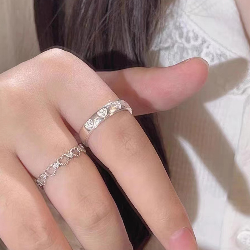 镂空爱心锆石戒指女小众设计清新甜美指环精致高级感情侣闺蜜对戒