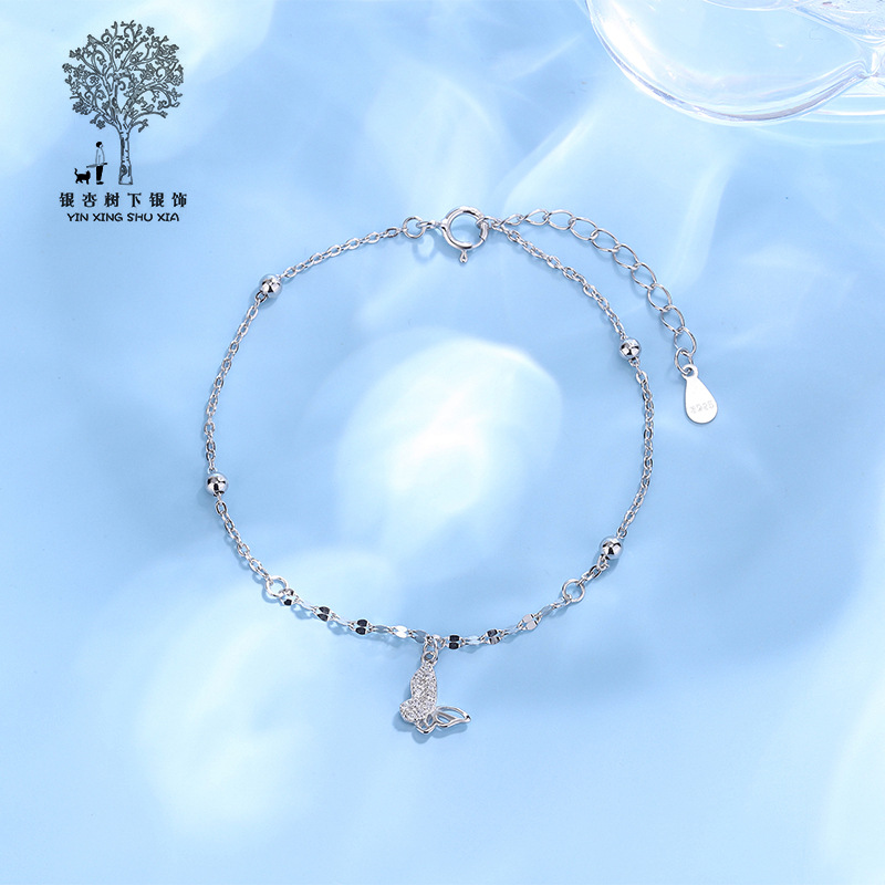 银杏树下S925纯银细手链女生2023年新款ins小众设计蝴蝶手饰品潮