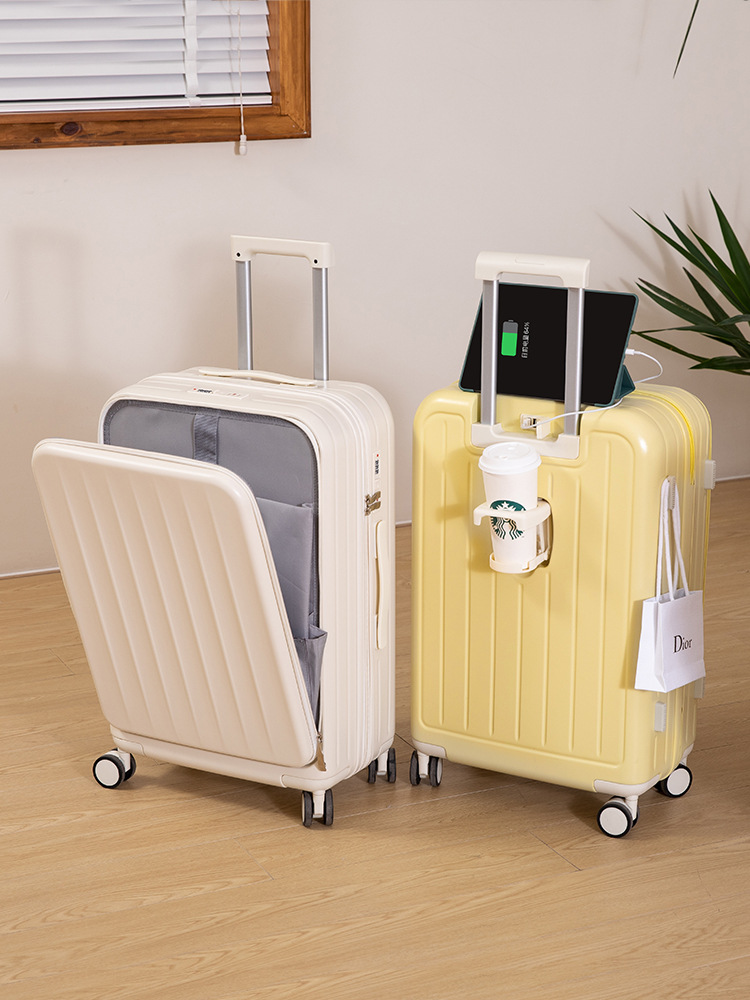 前置轮多功能行李箱充电女旅行箱24寸密码感万向开口拉杆箱男