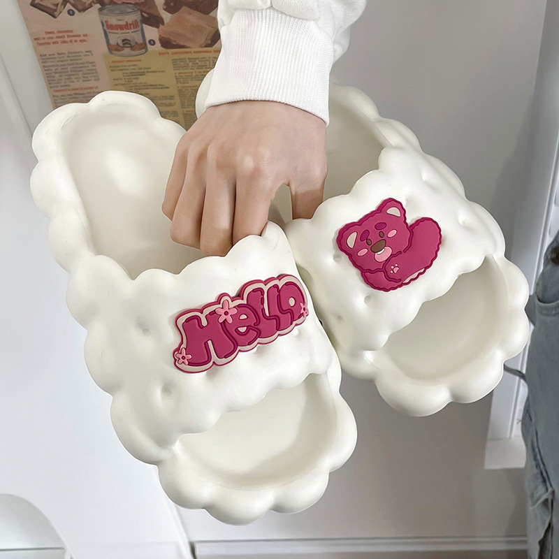 卡通熊踩屎感凉拖鞋女可爱室内家居厚底浴室防滑拖鞋夏季外穿凉拖