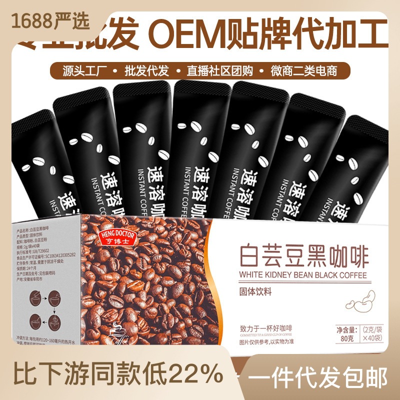 源头厂家亨博士白芸豆黑咖啡粉咖啡 即溶速溶批发代发