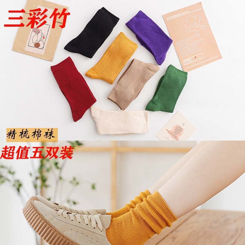 堆堆袜女纯色条纹吸湿排汗简约中筒袜ins潮网红可爱袜子新款