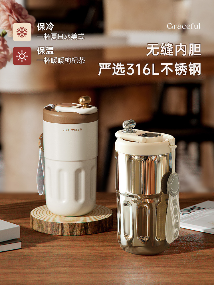 新款保温杯女生高颜值316不锈钢智能咖啡杯男士便携式随行