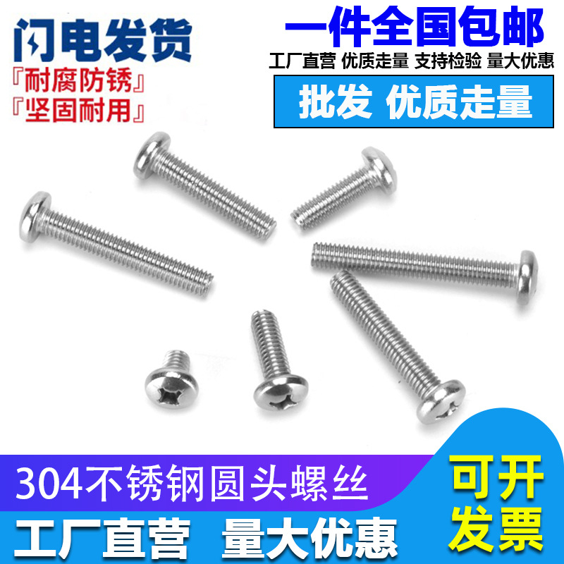 M1.6M2M2.5M3M4M5M6M8M10304不锈钢十字盘头圆头螺丝加长螺钉螺栓