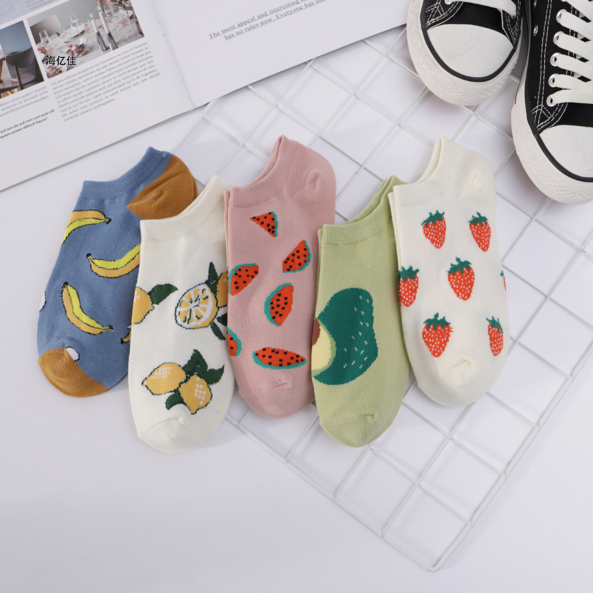 袜子夏季薄款女船袜in潮可爱日系牛油果学生韩版短筒网红草莓短袜