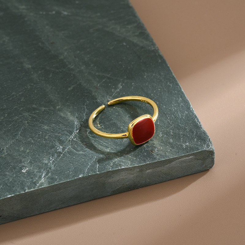 红色方形戒指女复古赫本风食指戒指高级感贝壳贝母开口戒2022新潮