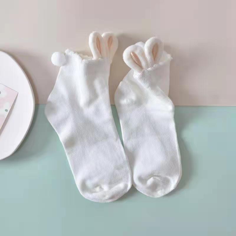jk日系可爱软萌妹袜子女纯色中筒袜洛丽塔兔耳朵短筒少女白色袜子