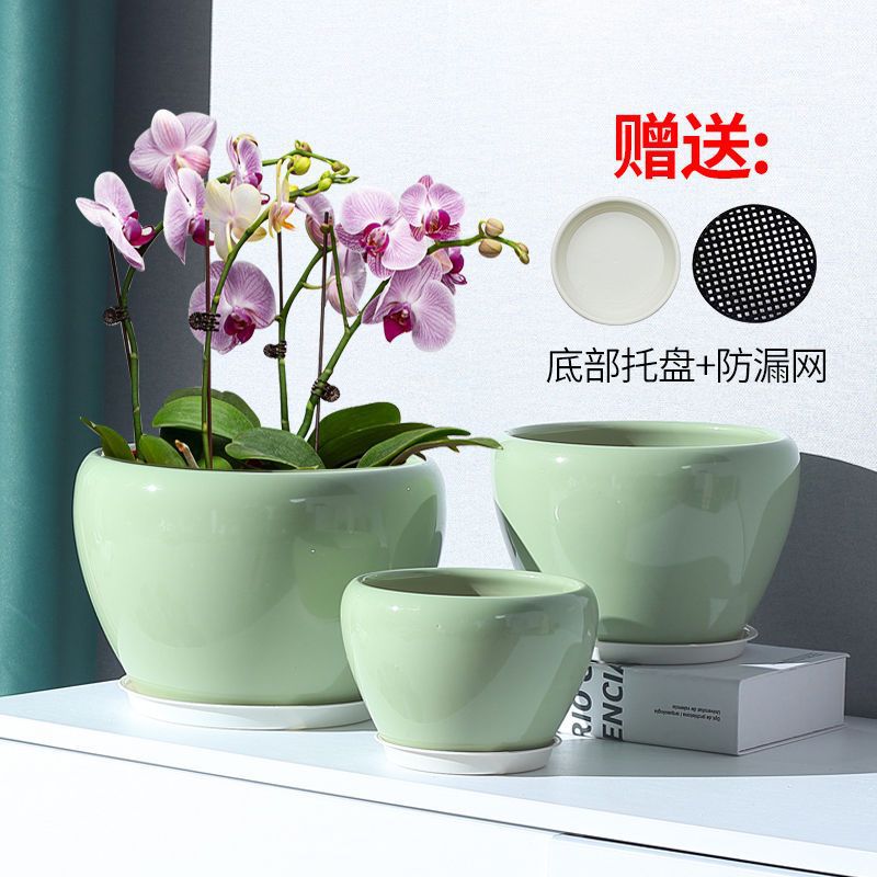 花盆陶瓷家用大号桌面多肉有孔花盆发财树透气陶瓷花盆带托盘
