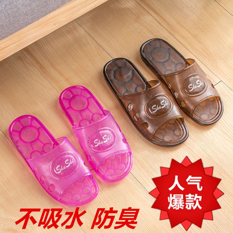洗澡拖鞋夏季浴室情侣家居水晶塑料男透明室内平底厚底女一件批发