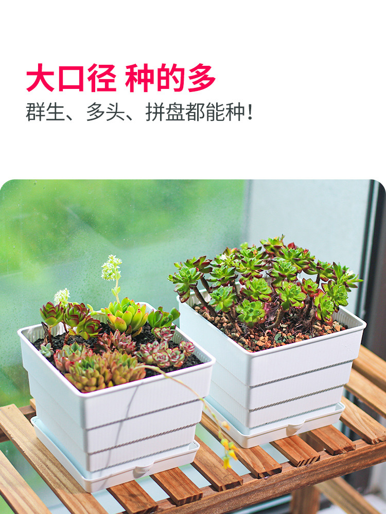 美莳大口径多肉花盆塑料控根肉肉盆景拼盘专用大号透气花盆带托盘
