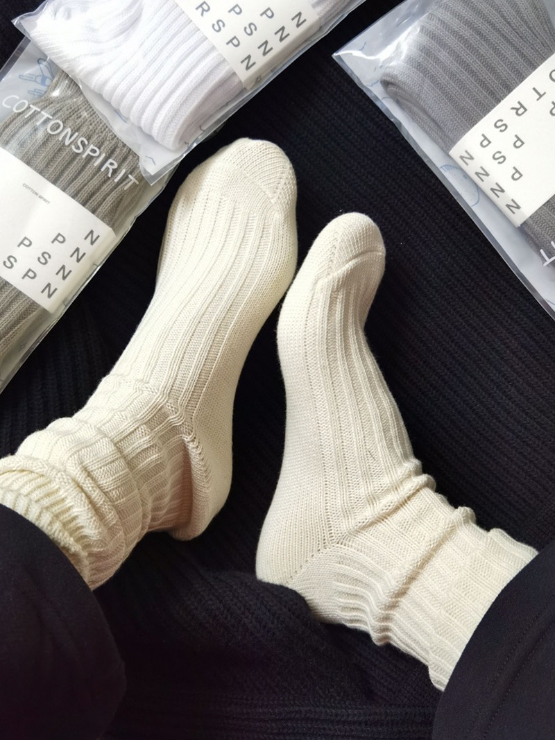 日系粗线长袜男 复古日系袜子男长袜纯色堆堆袜春秋款 余文乐袜子