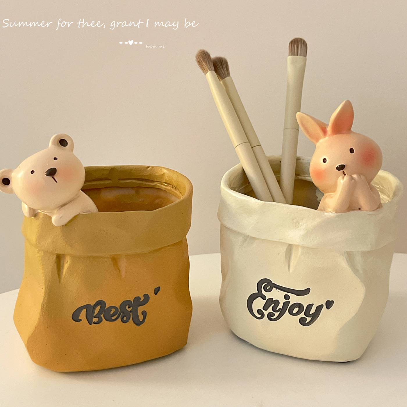 ins少女心桌面笔筒可爱化妆刷收纳桶办公居家客厅装饰品摆件礼物