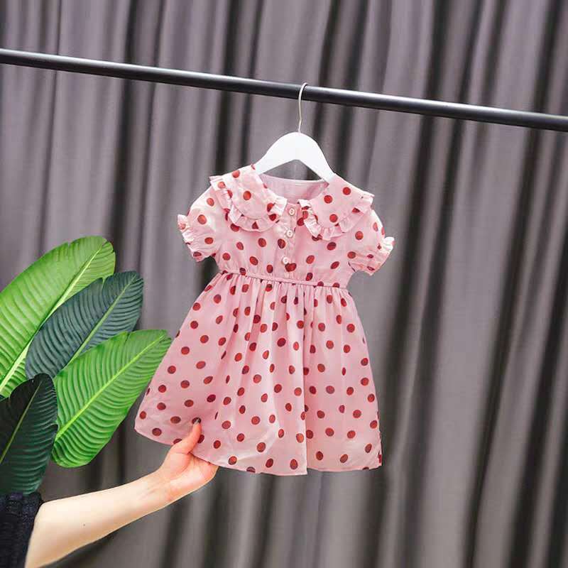 女童夏装新款2023宝宝洋气波点连衣裙夏时尚韩版雪纺儿童短袖裙子