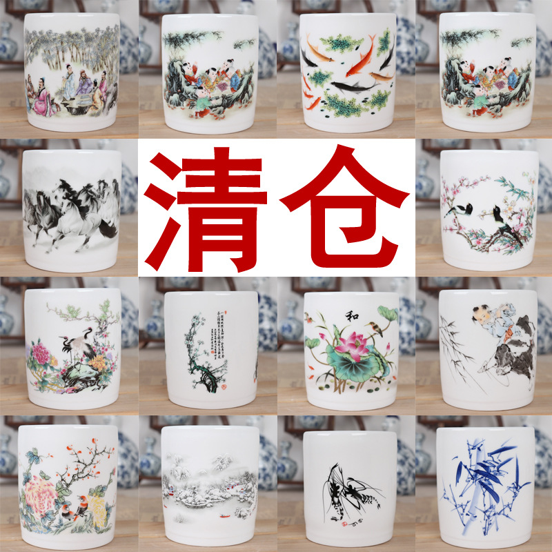 清仓 景德镇陶瓷笔筒学生礼物装饰桌面摆件收纳盒创意学生桌面