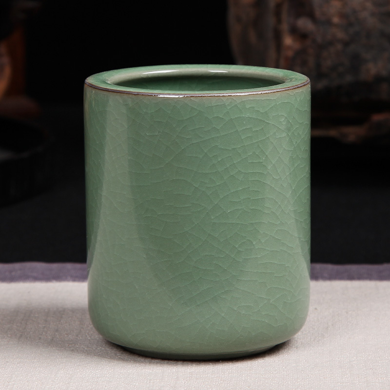 大号青瓷简易笔筒创意文具圆形陶瓷家用笔筒毛笔圆珠笔铅笔多功能