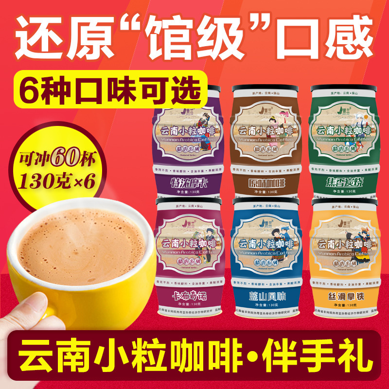 景兰速溶咖啡130g罐装蓝山卡布奇诺拿铁原味黑咖啡白咖啡云南小粒