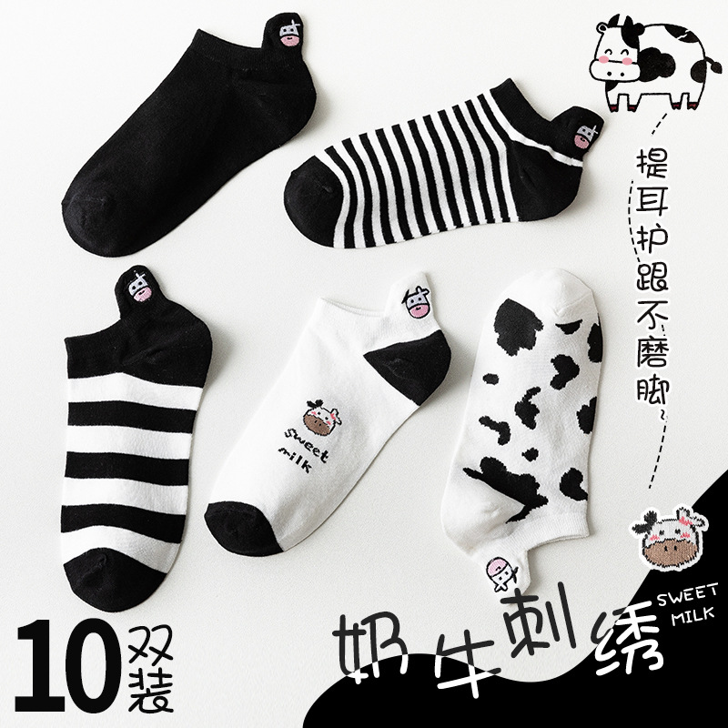 袜子女短袜夏季薄款黑白色浅口ins潮女士棉短款可爱日系春秋款