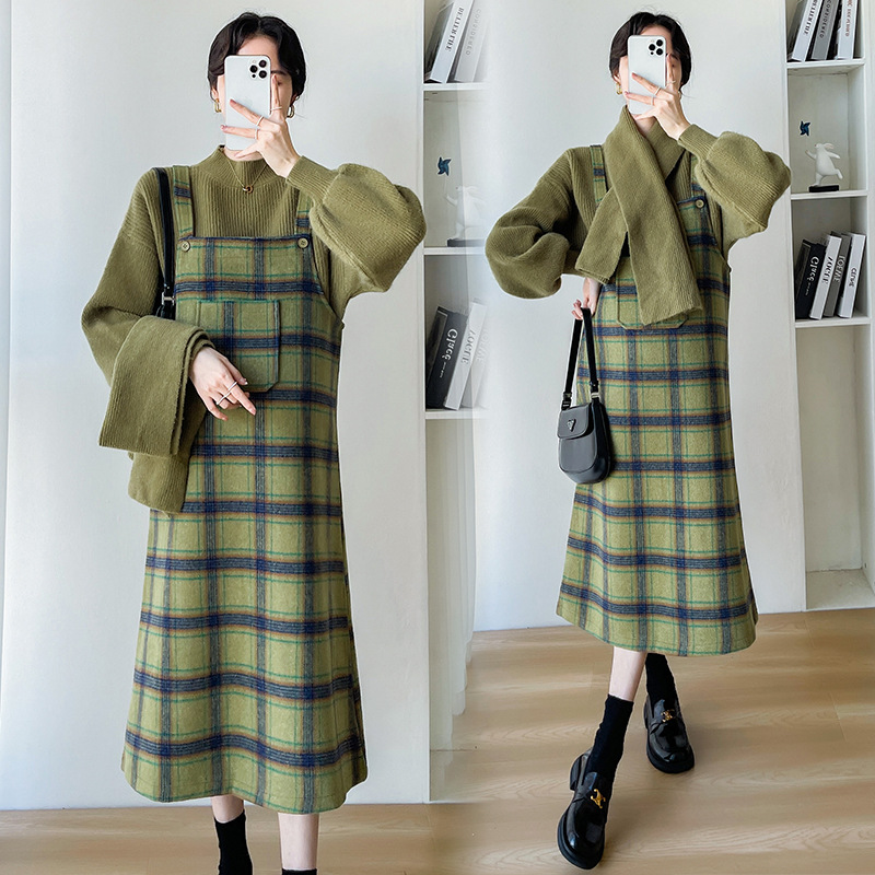孕妇冬装套装时尚外出宽松秋冬季新款加厚针织毛衣背带裙子两件套