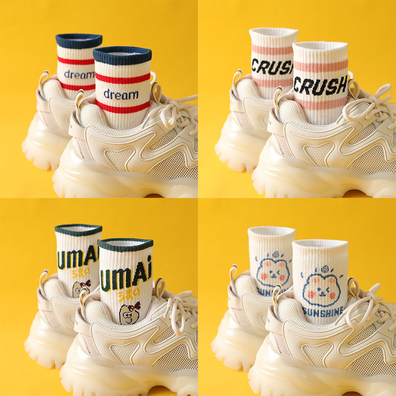 袜子女春秋款中筒棉袜ins潮日系可爱字母袜白色运动袜韩版春夏薄